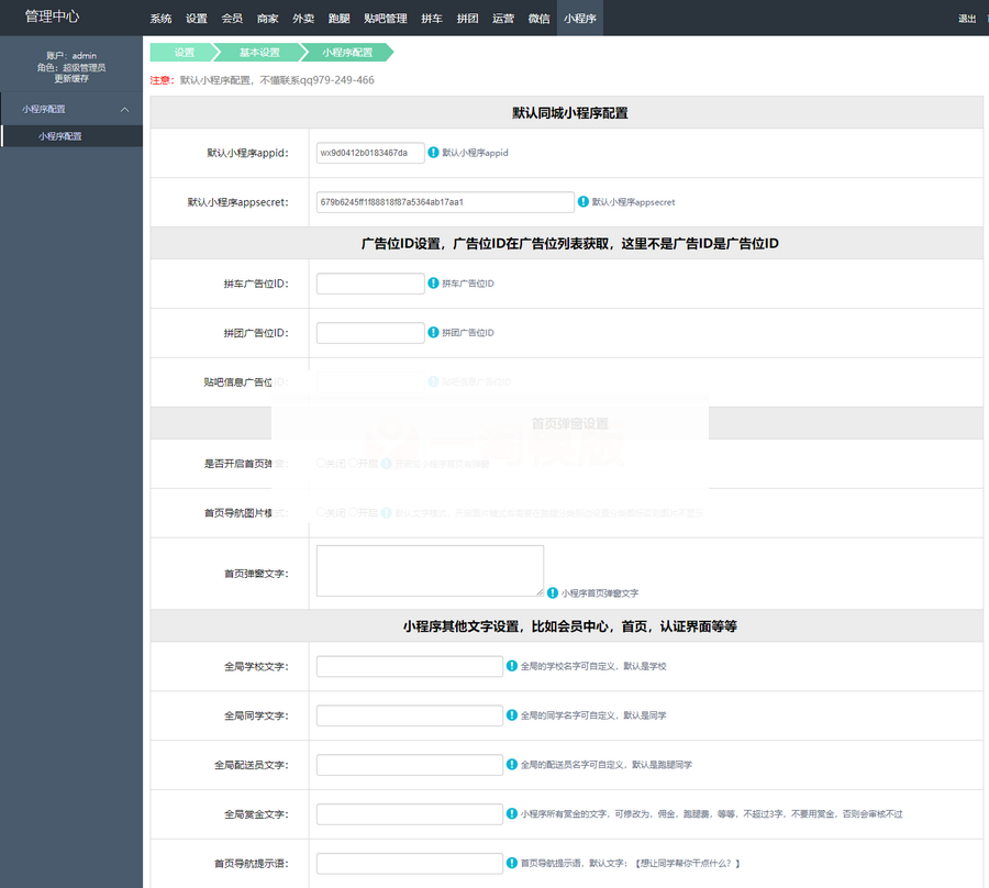 8:后台》》小程序》》小程序配置里面的全部配置好